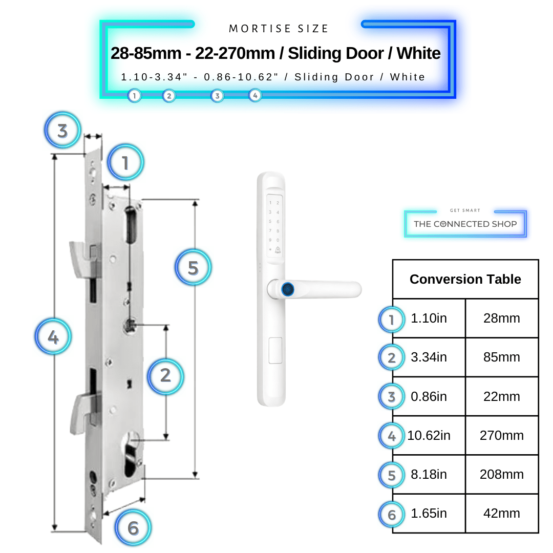 Profondeur de l'axe de la porte : 28 à 70mm (1.1 à 2.76 in)